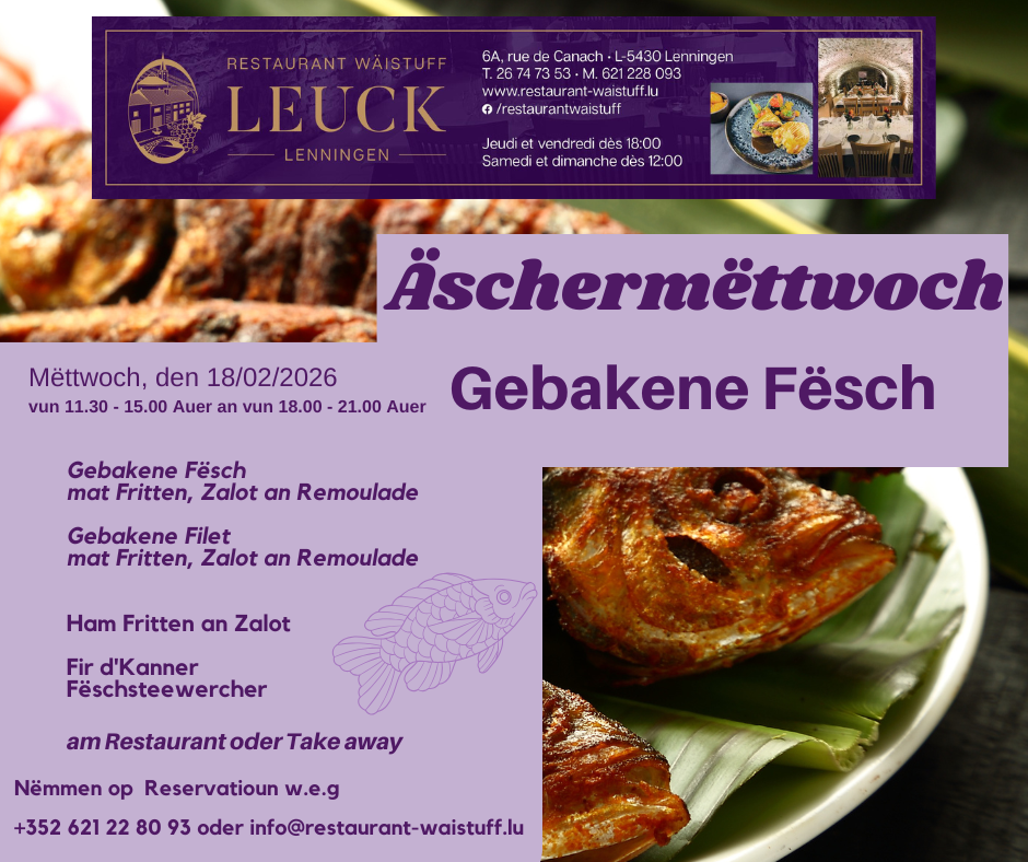 Reservieren Sie gerne frühzeitig Ihren traditionellen gebakenen Fisch oder filetierten Fisch mit Remoulade, Fritten und Salat.
